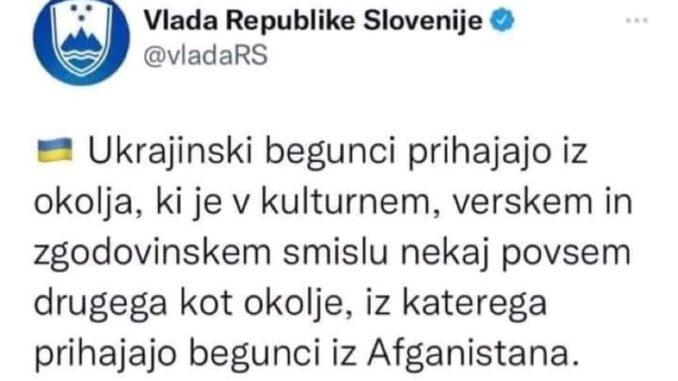 Kasneje sem videl, da si enako stališče delijo tudi Poljska, Madžarska in Slovenija, država v kateri živim že vrsto let. Kot begunec. Vlada Republike Slovenije je na svoji uradni strani zapisala, da “Ukrajinski begunci prihajajo iz okolja, ki je v kulturnem, verskem in zgodovinskem smislu nekaj povsem drugega kot okolje, iz katerega prihajajo begunci iz Afganistana”. Slovenski ministri so izpostavili, da je potrebno ukrajinskim beguncem čimprej omogočiti vstop na trg dela, saj da znajo delati in so pridni.