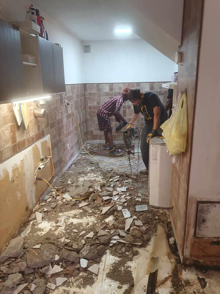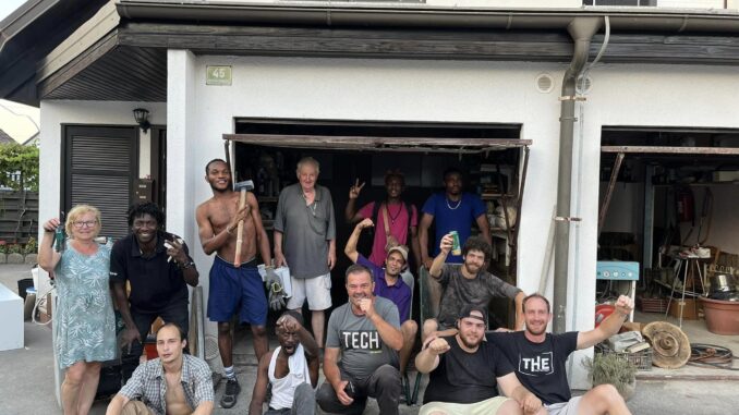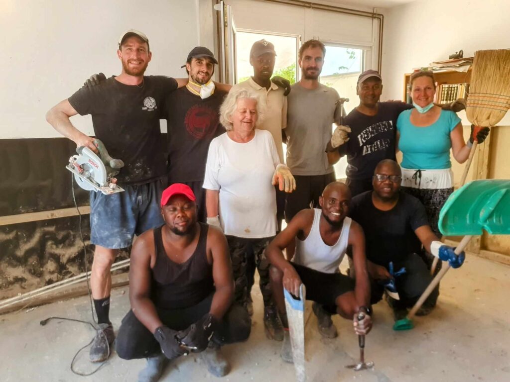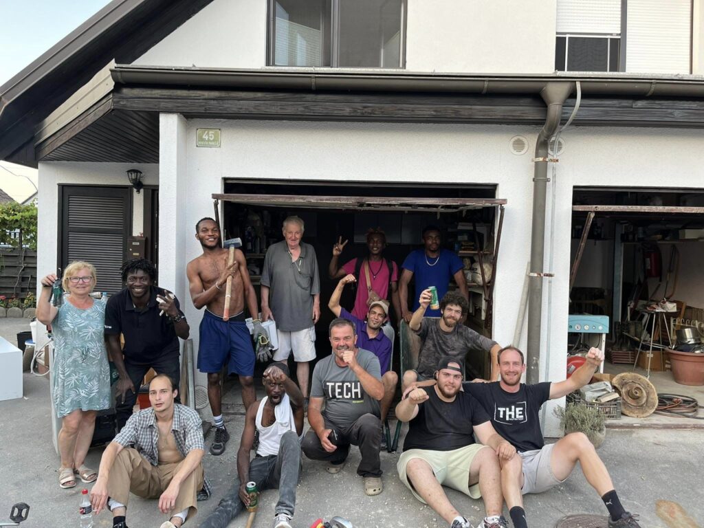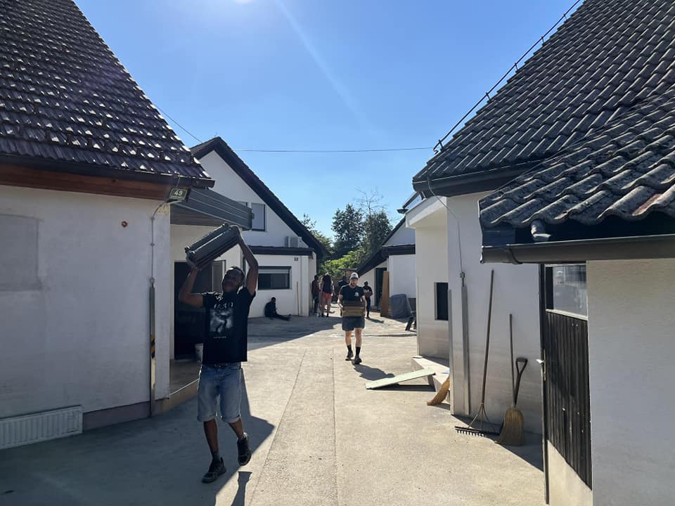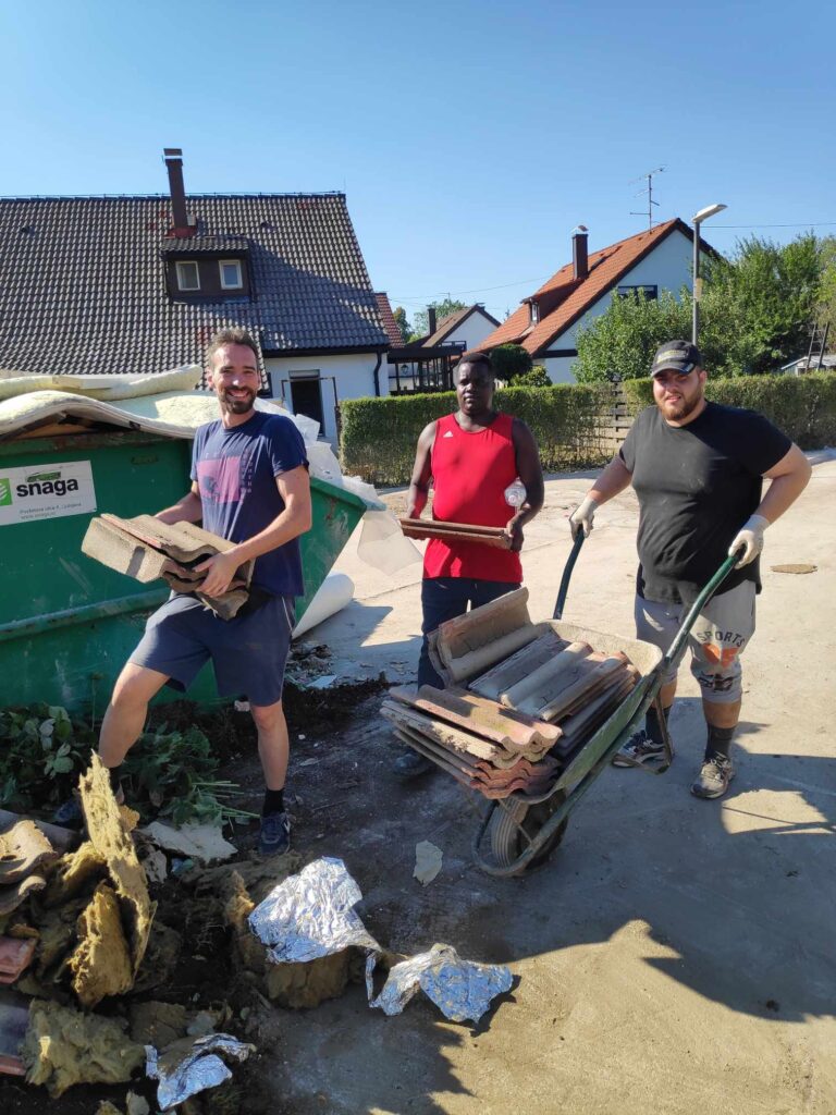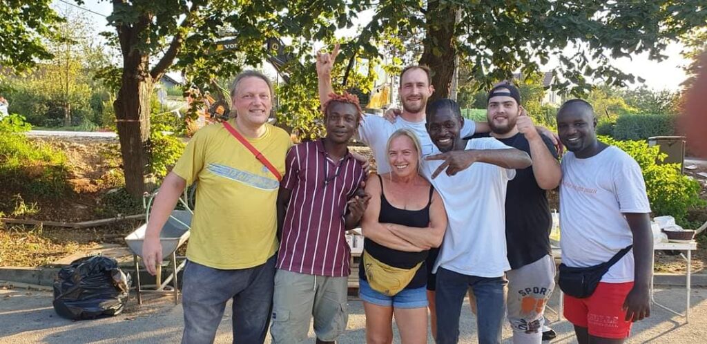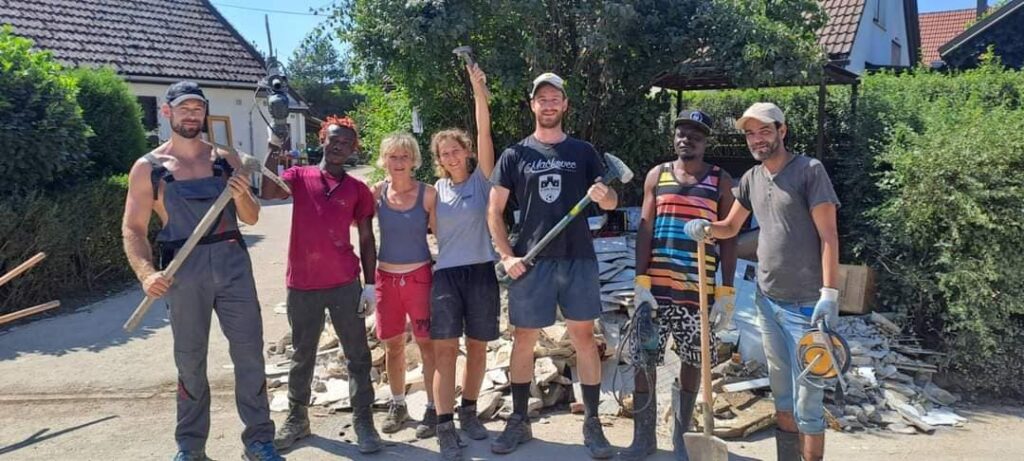 “Prostovoljci Sneberje 2023 – BEST TEAM! Fantje vsak dan trdo delajo (štemanje, itd…) od jutra do večera, prebivalci so jih že čisto posvojili. Tina, koordinacija Sneberje 2023”
